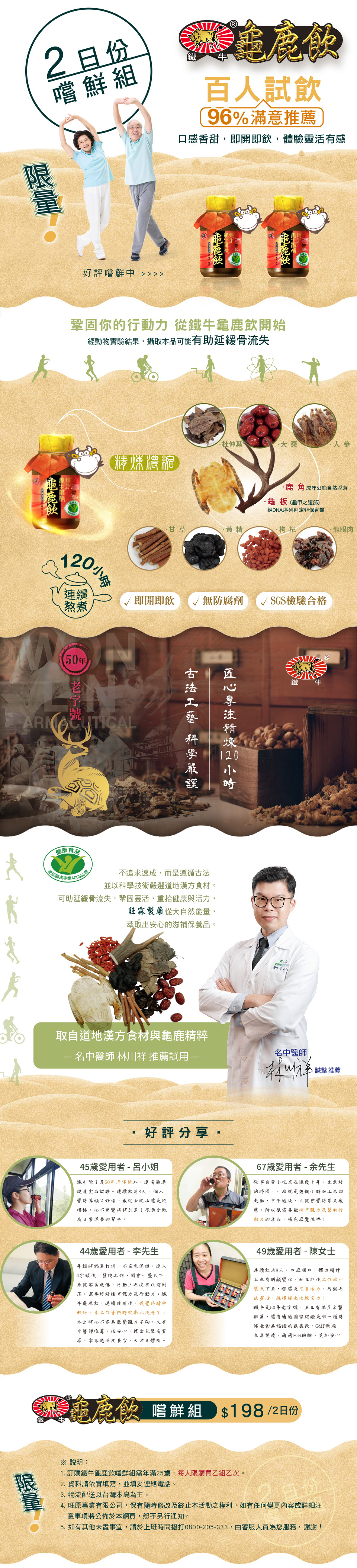 「鐵牛」養生滋補龜鹿飲,透過製程帶您瞭解用料實在, 以及旺霖對產品品質的堅持與把關。